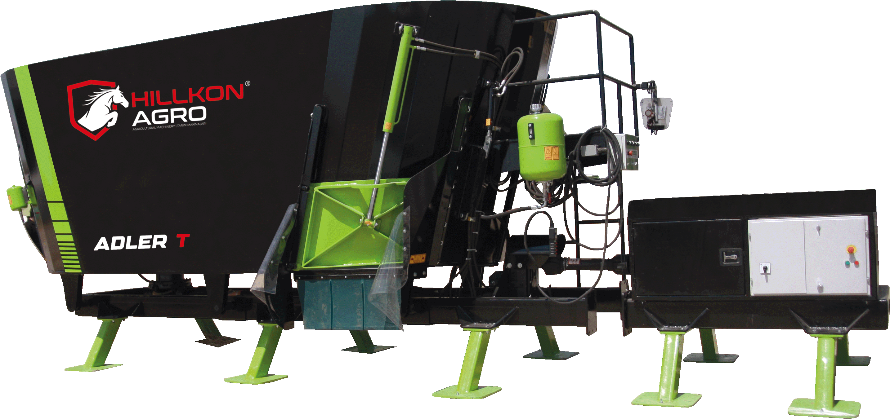 The feed mixer is designed for grinding and mixing feed mixtures. The vertical auger design handles dense and coarse feed more reliably, thanks to specially designed cutting knives made of hardened steel. The feed components that fall into the feed mixer retain their natural qualities, since they are not kneaded or heated when mixed and crushed. The unloading belt conveyor is located in the side part. At the request of the client, this model is equipped with an electronic weighing system. Robust design, convenient and flexible operation ensures high efficiency and saves time.